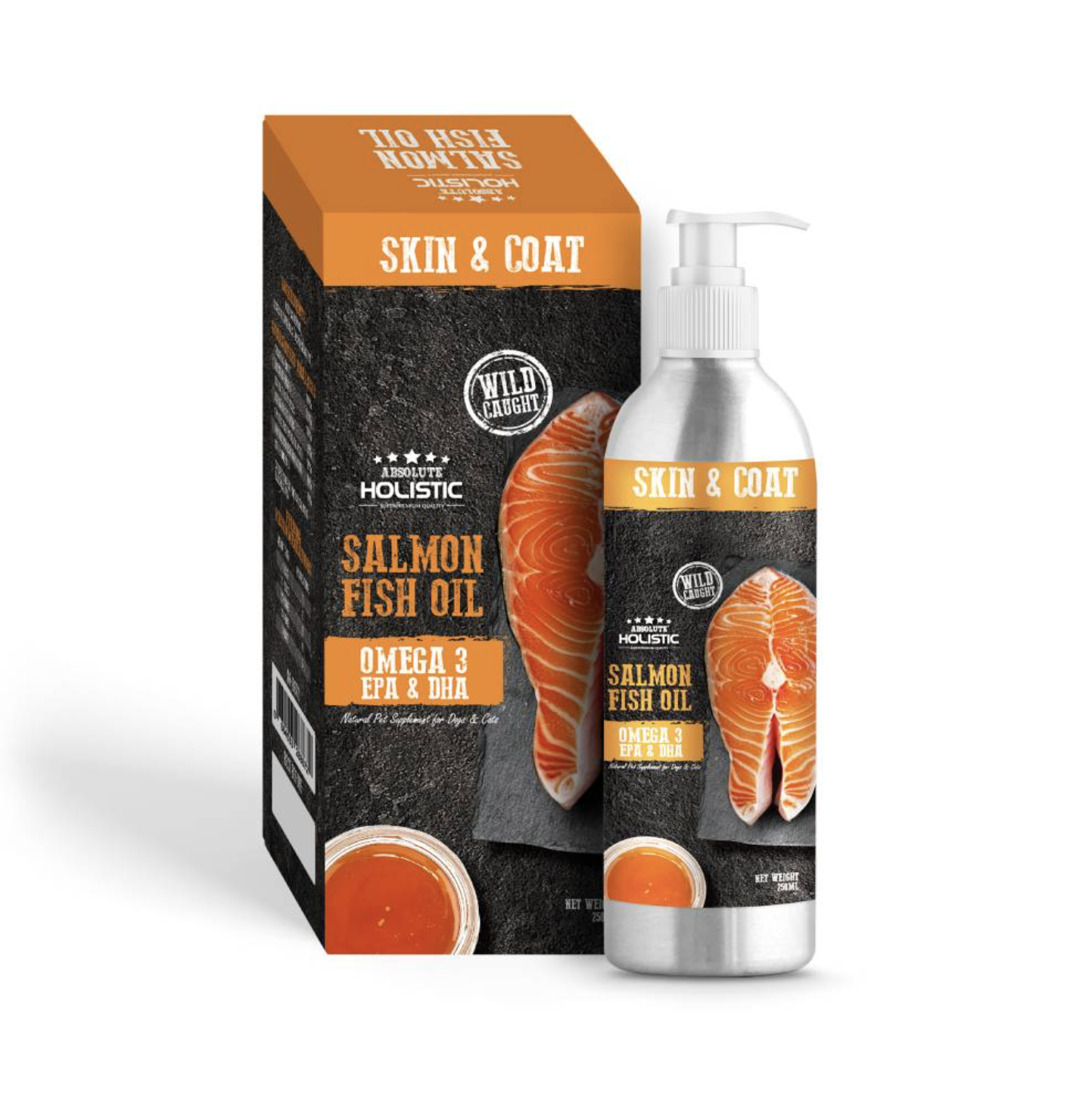 Introducing our Absolute Holistic Salmon Oil Formula is a liquid fish oil that provides Omega-3 Fatty Acids (EPA and DHA) that support your pet’s skin and coat health. Sourced from Alaska, this Salmon Oil formula contains Omega fatty acids that provide support for skin and coat health to keep your pet looking best in show.