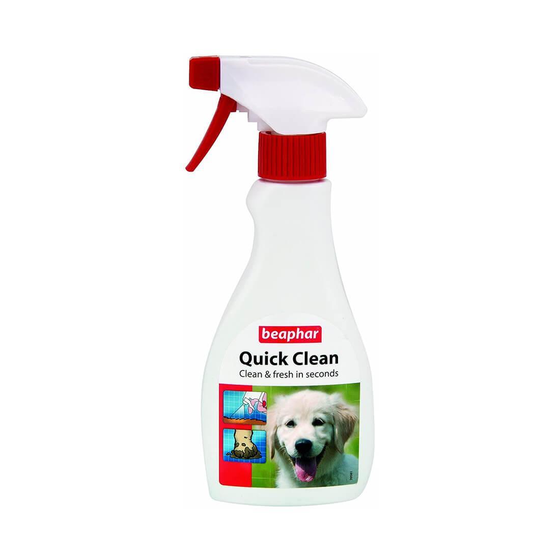 An easy to use spray shampoo formula for dogs, Beaphar Quick Clean effectively cleans and freshens your dog’s fur in a matter of minutes, removing dirt and unpleasant odours in the process to leave your dog’s coat smelling fresh.