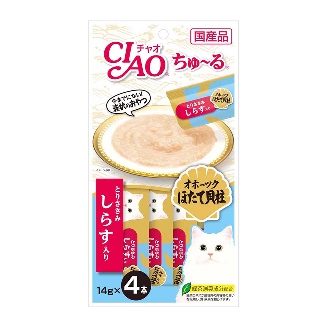Chicken, scallop, scallop extract, shirasu, sugar (oligosaccharides, etc.), vegetable oils, thickeners (processed starch), thickening polysaccharides, minerals, seasonings (amino acids, etc.), vitamin E, red yeast rice pigment , Green tea extract