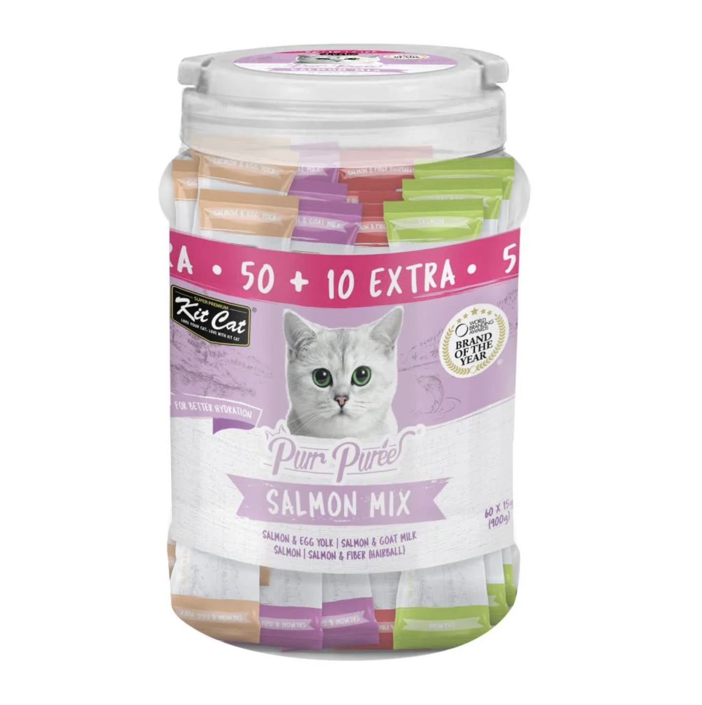 Kit Cat Purr Puree® cat treats are created by nutritionists who are also cat lovers. Each pack is made with the goodness of carefully selected high quality ingredients that are; 100% natural and free from grains, preservatives and artificial colours. Perfect for cats of all life stages, this treat is sure to satisfy, while providing your cats with a dose of hydration through a delectable and irresistible experience.