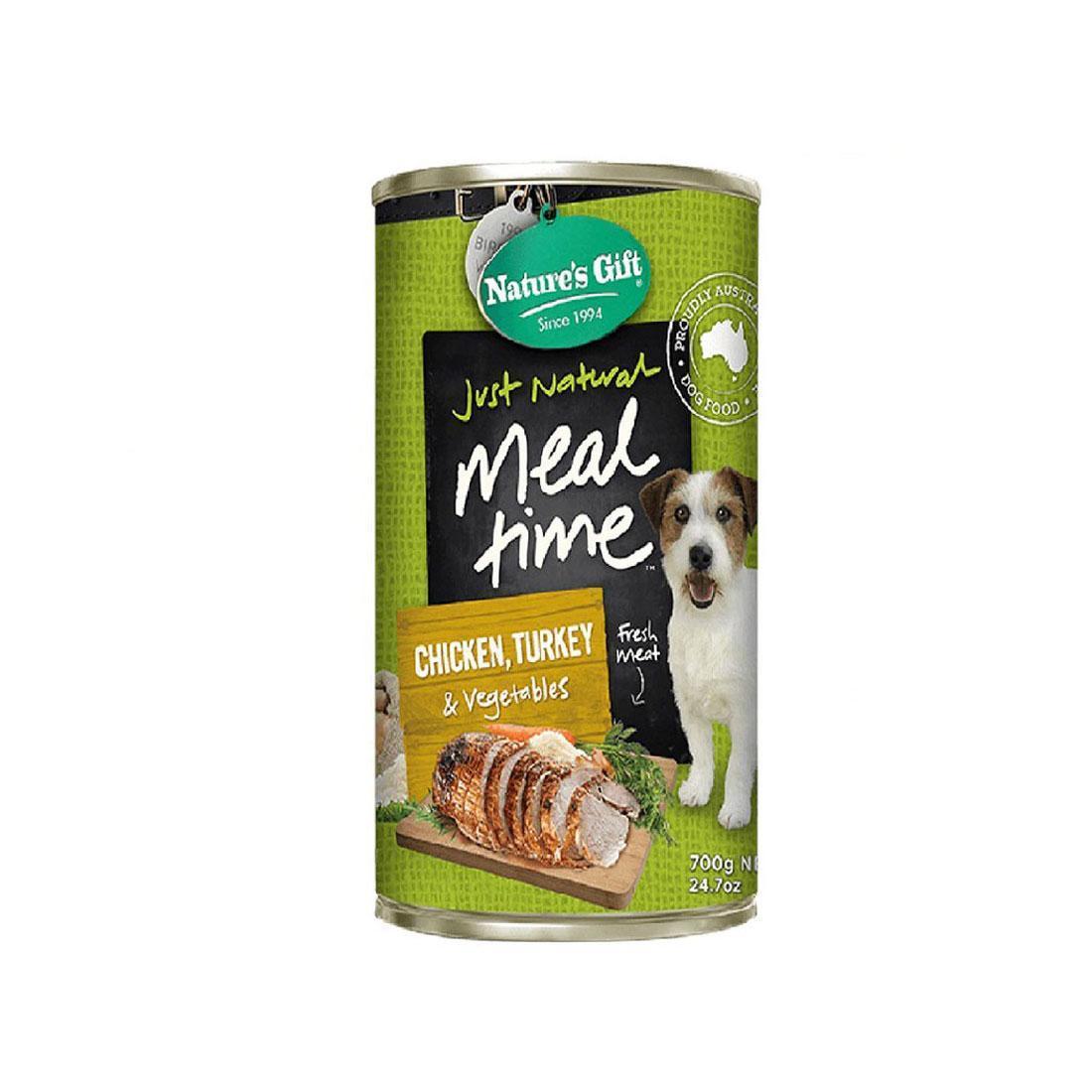 Optimal health for pets starts with simple and nutritious food. The Nature’s Gift Meal Time Chicken, Turkey and Vegetables recipe offers nutritional everyday meals for furry friends of all sizes. With chicken and turkey as the primary ingredients, dogs get more than one source of protein to maintain muscle health. Balanced with the addition of vegetables for fibre, dogs get all the nourishment they need to cope with busy days of playing and running around. Ideal for everyday feeding, this canned dog food is both flavourful and nourishing, making it a great wet dog food choice for your pet.
