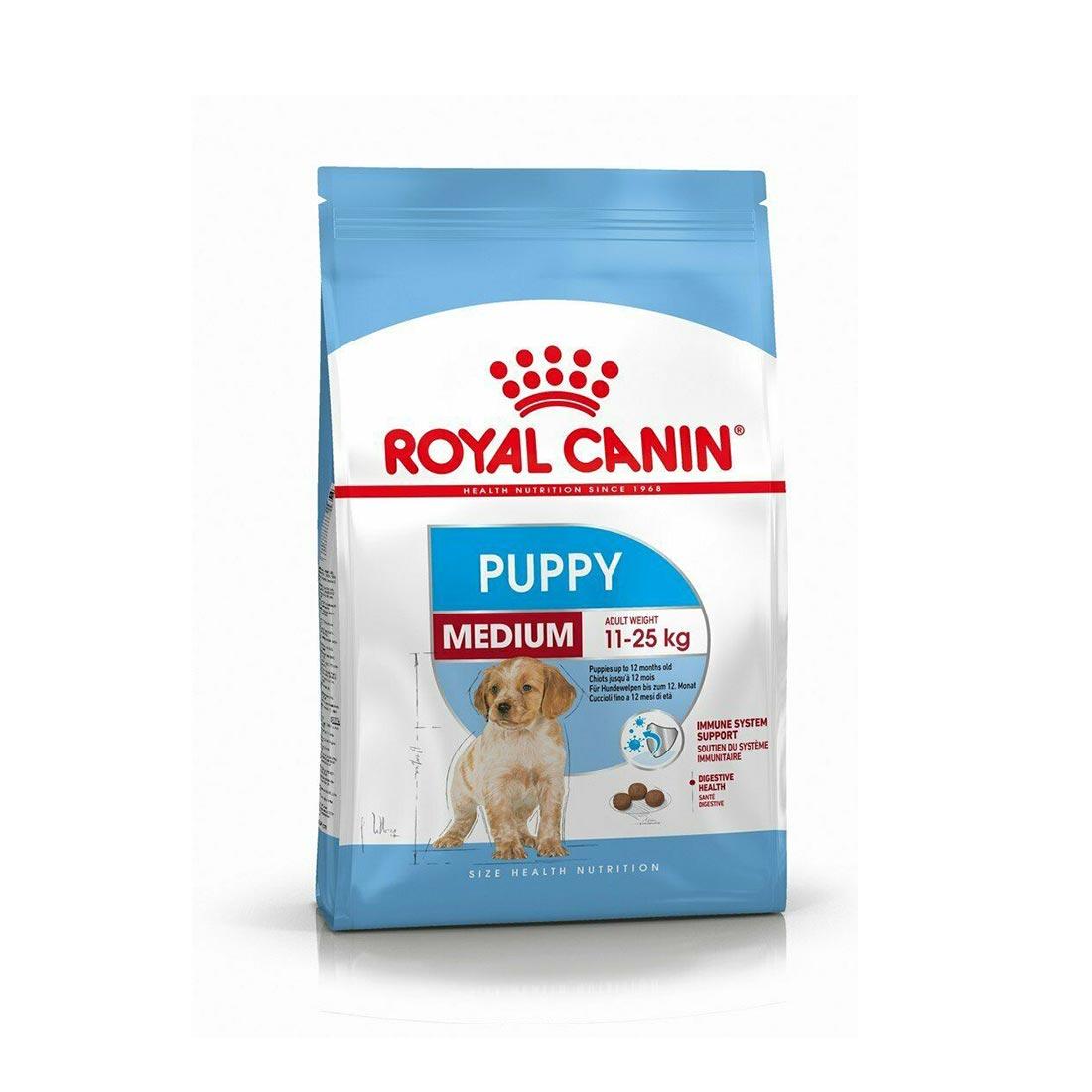 - High Energy: Royal Canin Medium Puppy Dry Dog Food is ideal for medium size breed puppies which have a short growth period. They need food rich in energy sources to match their high energy levels. Suitable for puppies expected to have an adult weight between 11 and 25 kg.